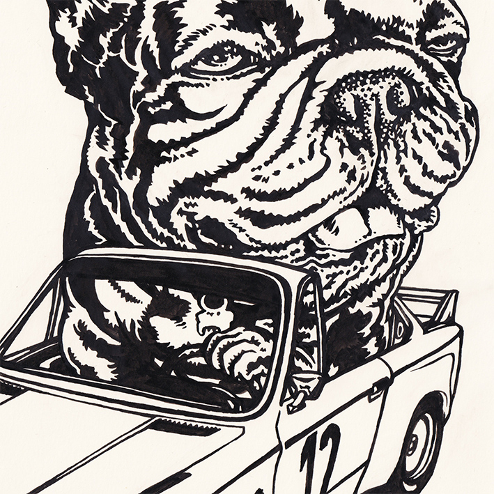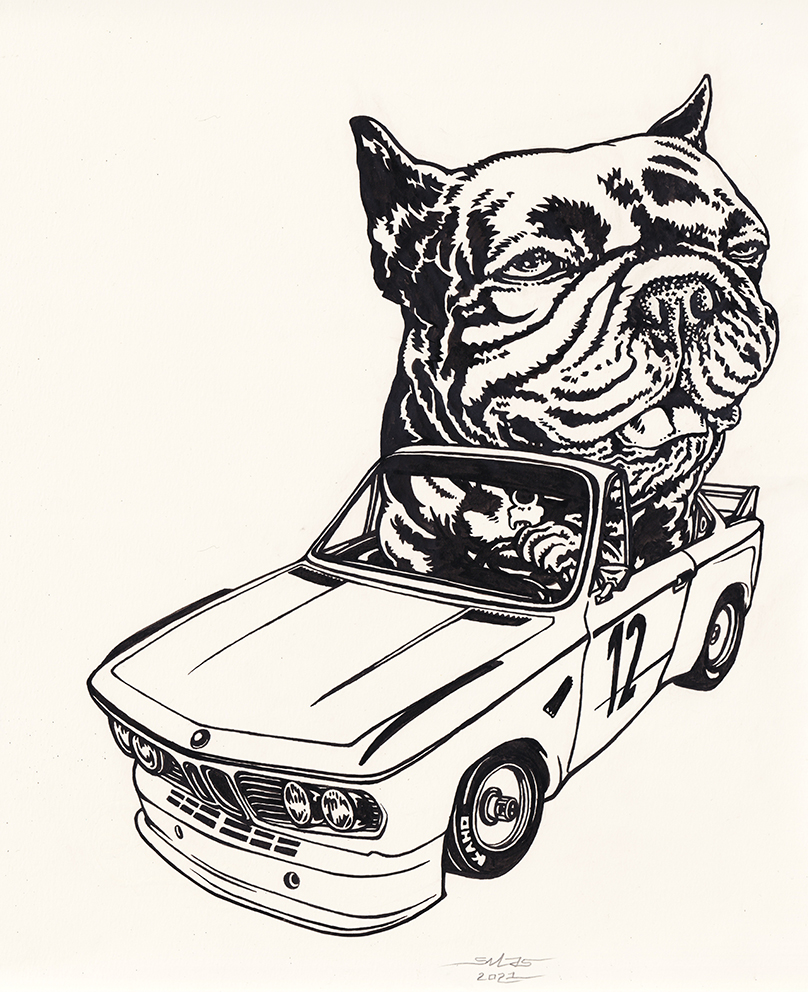 This is the original drawing by Silas. The drawing is part of a KAMP HORST skateboard graphic for Meltdown Skates. It was made in 2021 with Indian ink on Simili Japon art paper. Feel free to contact the artist for more information about this art piece.