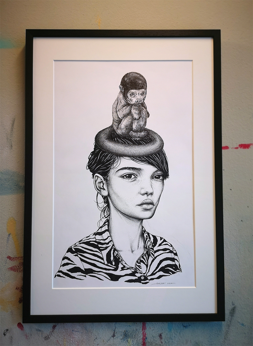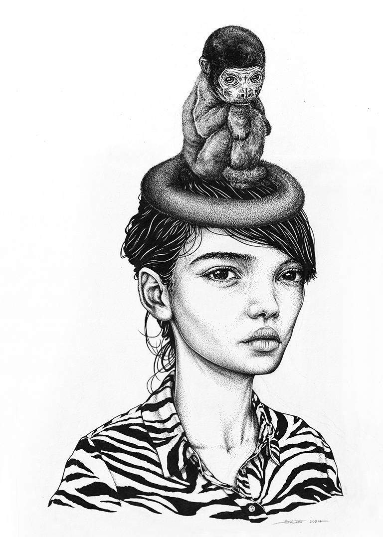 This is an original drawing by Silas. It is made in 2024 with pen and East Indian ink on 210 gsm art paper. Feel free to contact the artist for more information about this art piece.