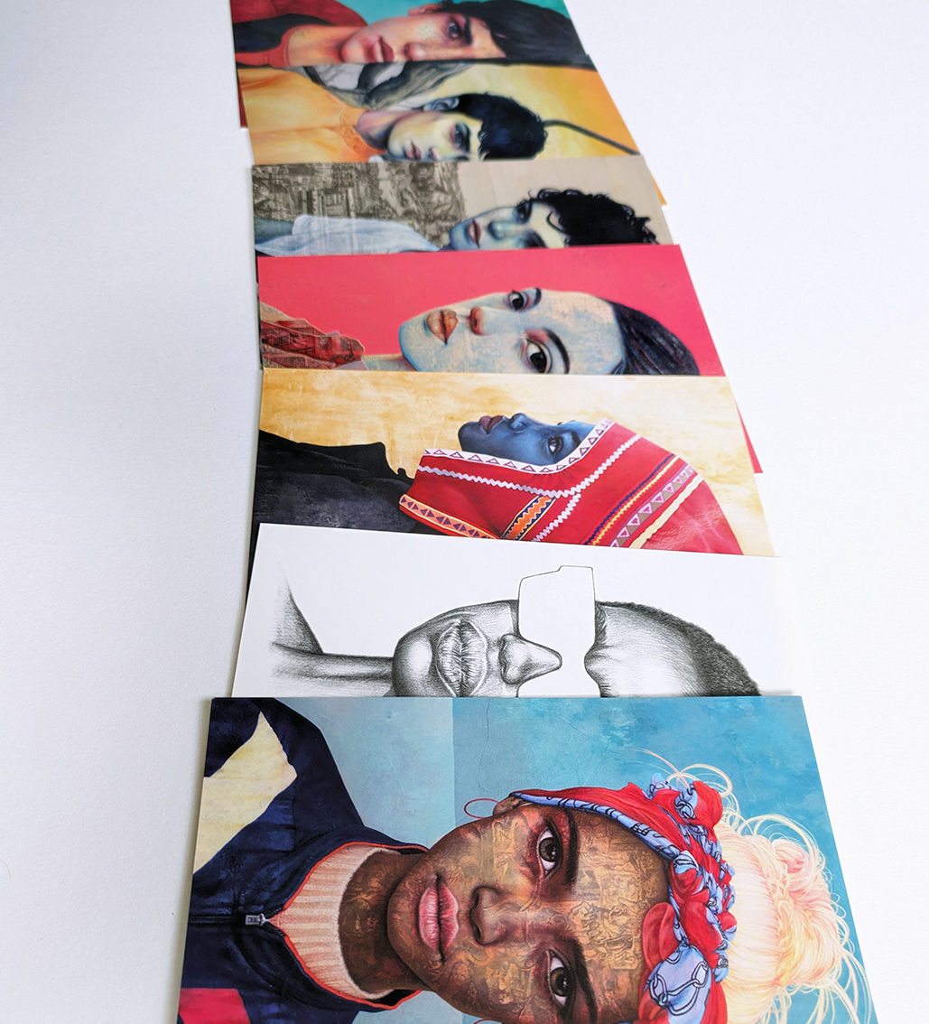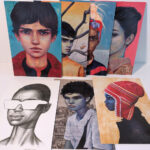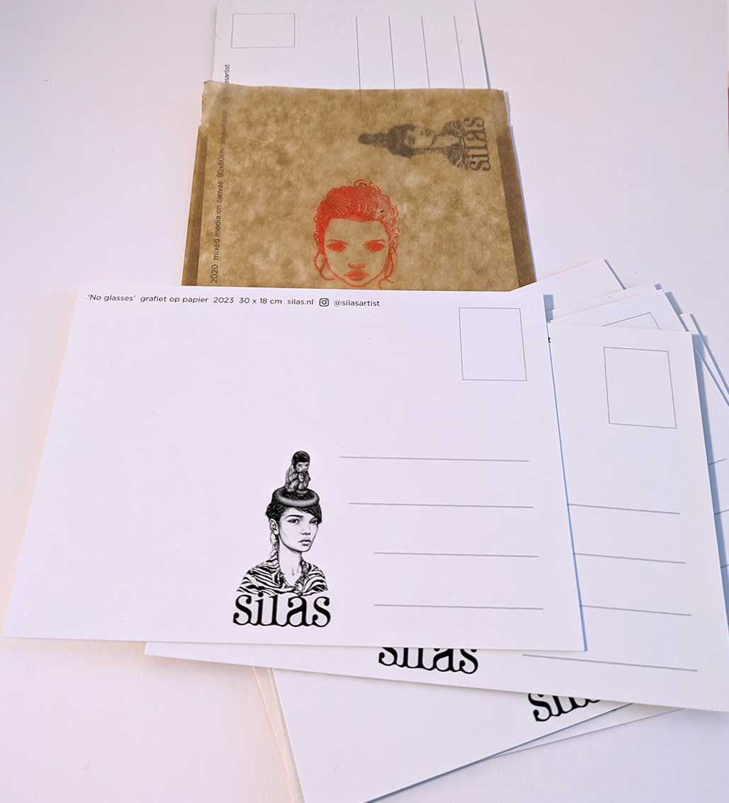 This is a set of postcards of the artworks: Saga, Blitz City, Adamo, No Glasses, Renter, Iani and Seventh Sun. The postcards are printed on 350 grams paper and they are glossy laminated. In the package is also a sticker included.