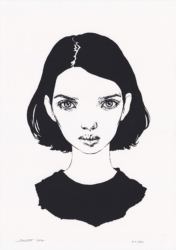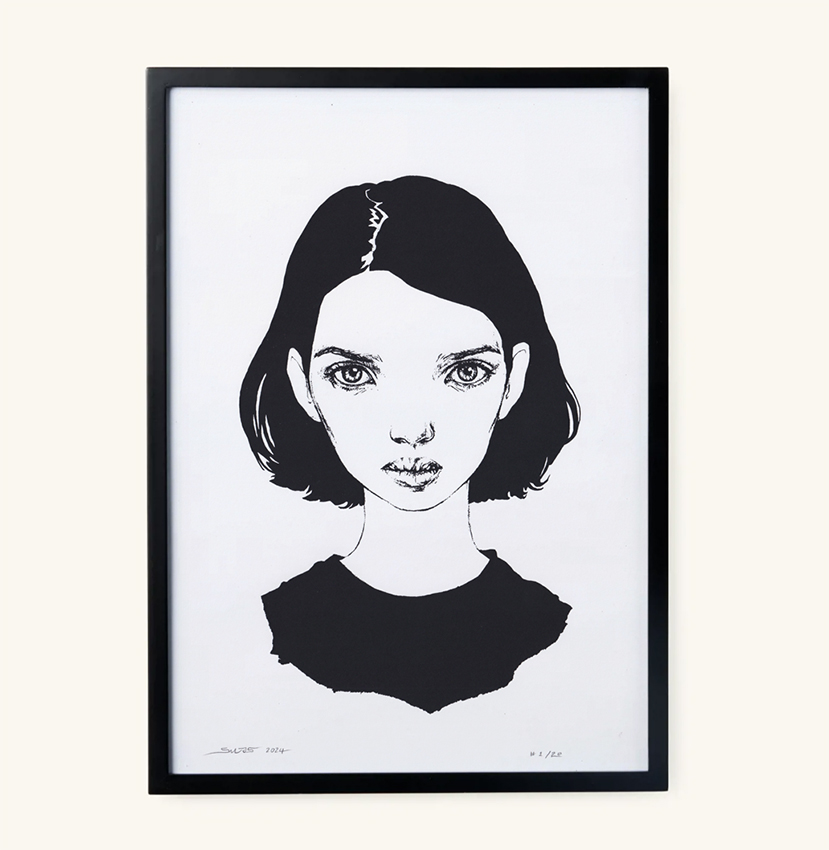 This is a screen print of the artwork Winnie. It’s screen printed in black ink on 250 grams ‘Lisse Smooth’ (acid free) art paper. Screen printed by the artist himself in a limited edition of 20 pieces. Signed and numbered by the artist. The artwork fits perfectly in a standard 42 x 29,7 cm (A3) frame.