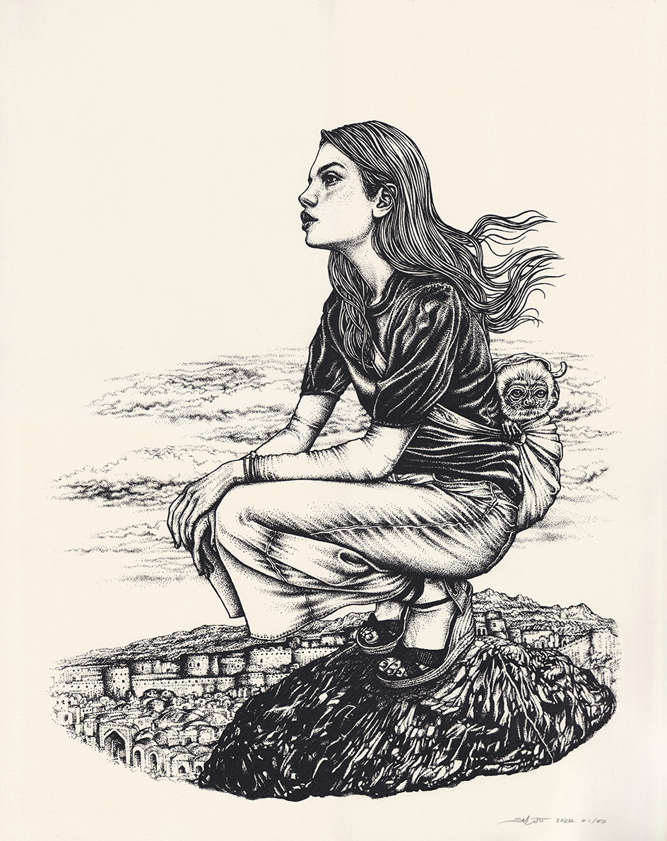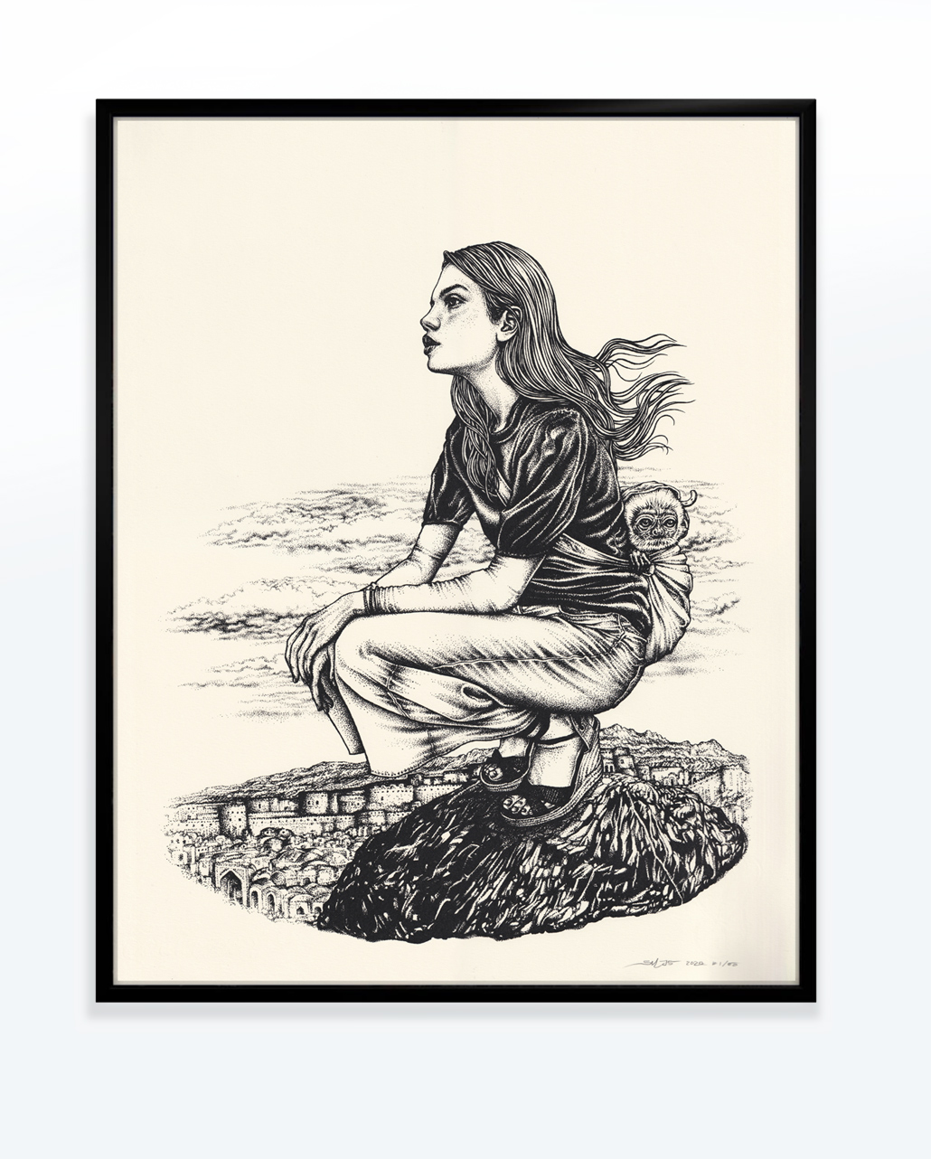 It has been screen printed in black on Simili Japon art paper (off white, 220 gr/m2) in a limited edition of 60 pieces. Signed and numbered by the artist.
